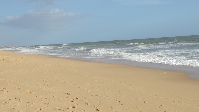 Après avoir garé la voiture dans le parking, nous empruntons l'esclier en bois qui nous conduit vers l'étendue de sable fin baigné par les vagues de l'Atlantique.